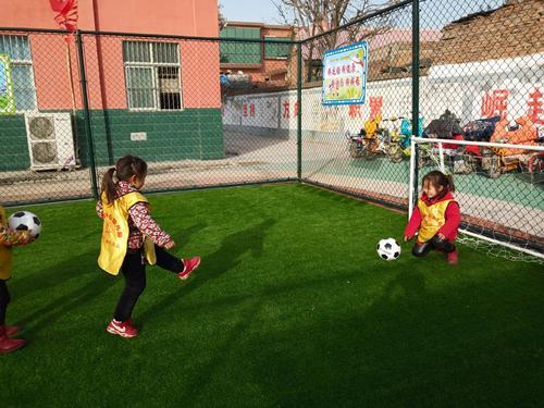 游戏开始,甲队幼儿同时踢球射门,乙队幼儿进行堵截(用手接球或用脚挡球,踢回)。射门成功(球过乙队防线),一个球得一分,教师记下总分。然后甲、乙两队互换位置,交换射球,守门。射进球多的队获胜。