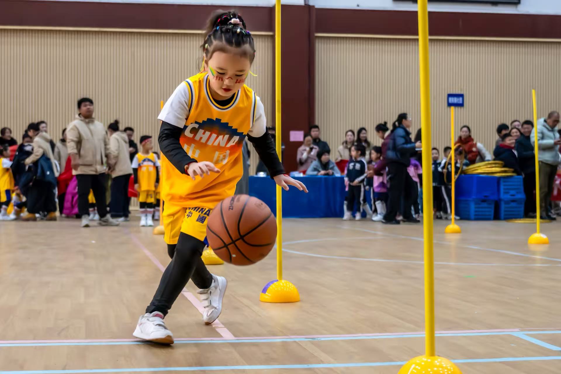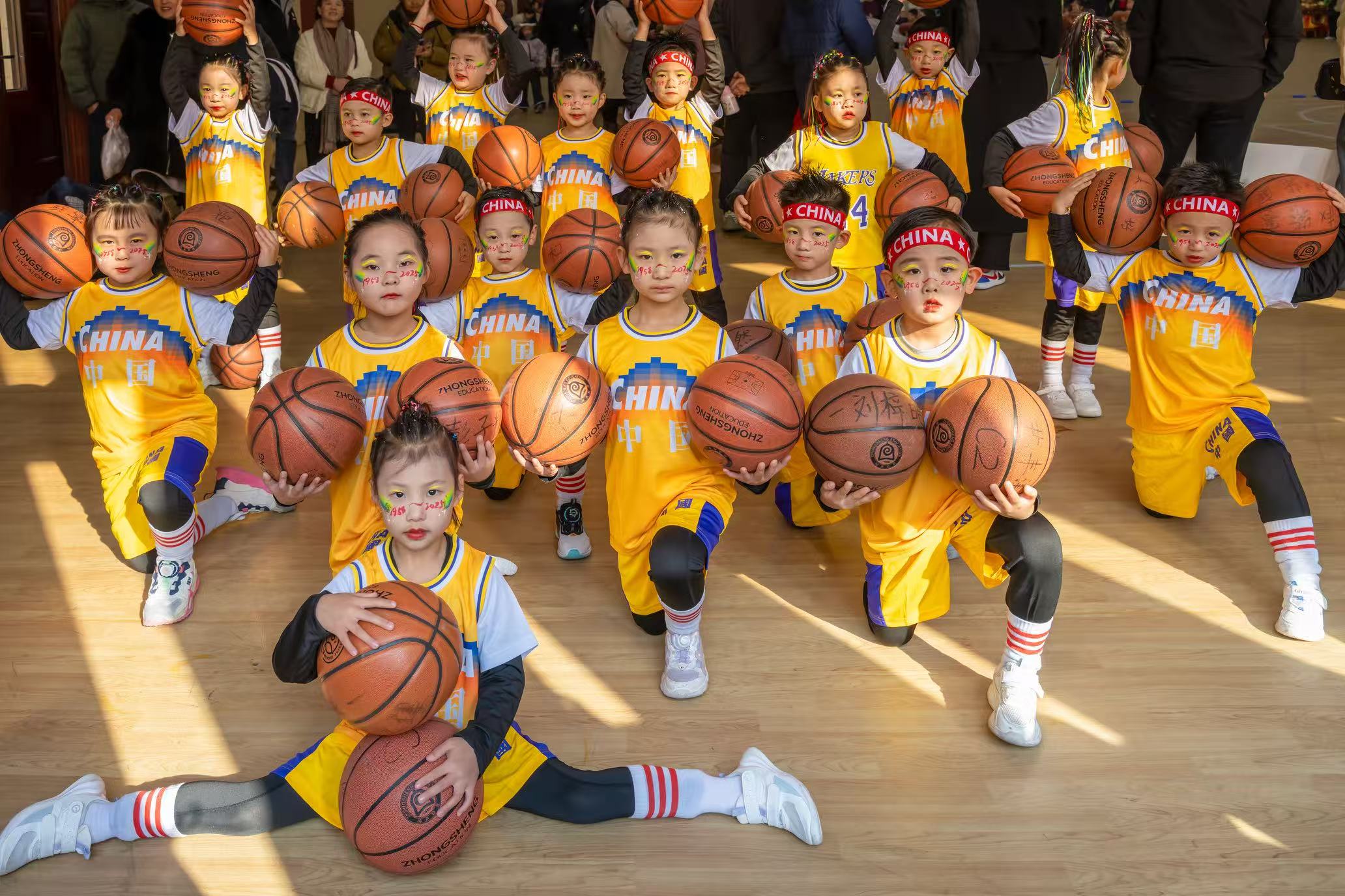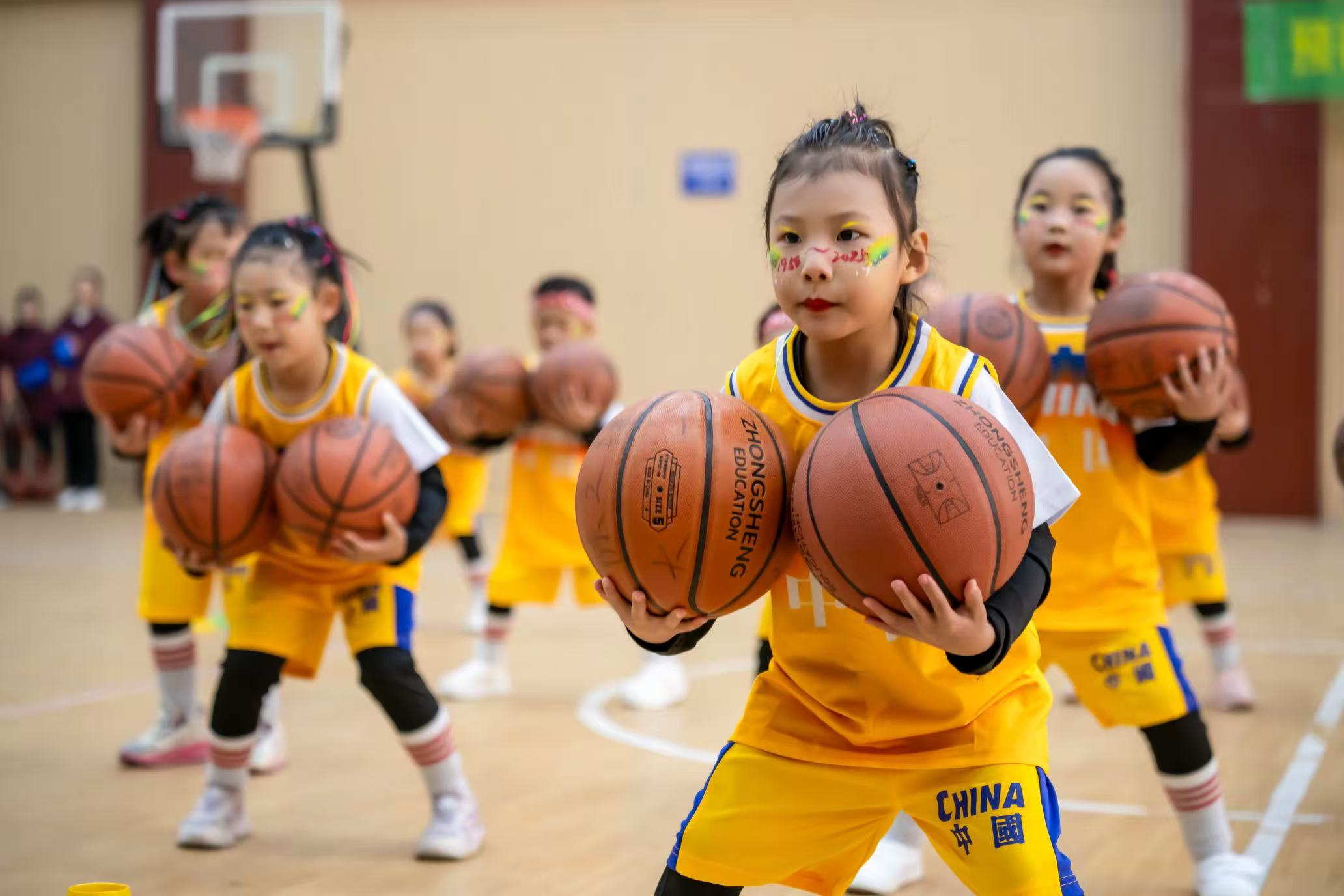 小朋友手持篮球,姿势整齐划一,我们看到的不仅是篮球技巧的练习,更是孩子们自信、专注、团队合作的精神。