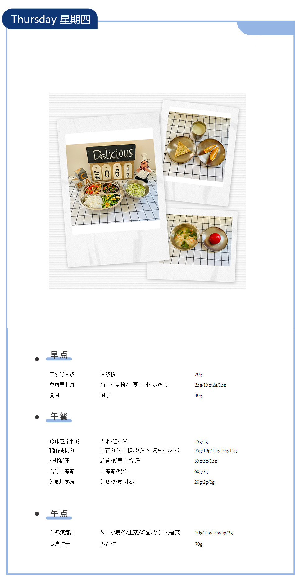 第十六周食谱