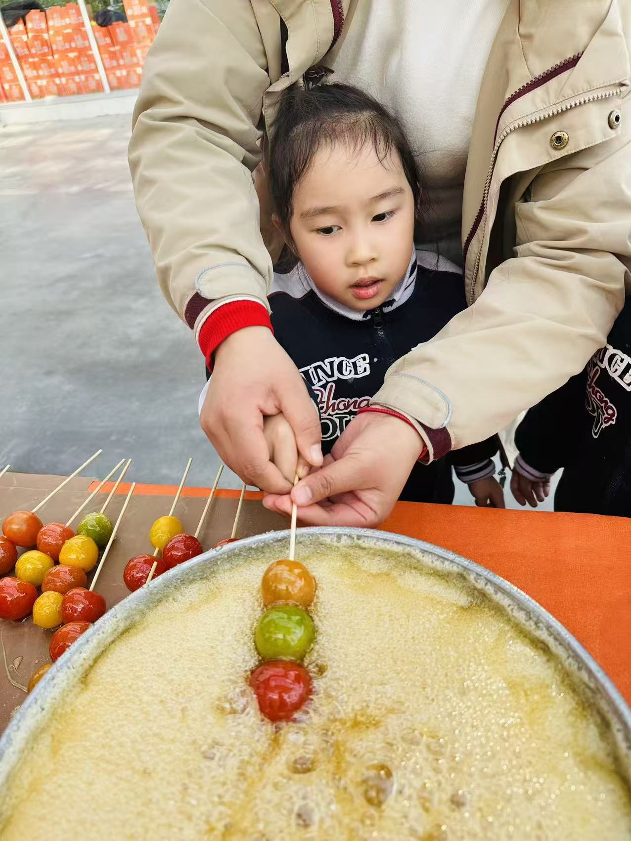 在阳光明媚的上午,孩子们笑容洋溢地走进番茄庄园。在温暖的手工制作区,孩子们将红、黄、绿各色小番茄串好,并蘸上熬制的金黄色糖浆。现场热气腾腾的糖浆锅、宝贝们专注的制作神情,定格这美好的瞬间。