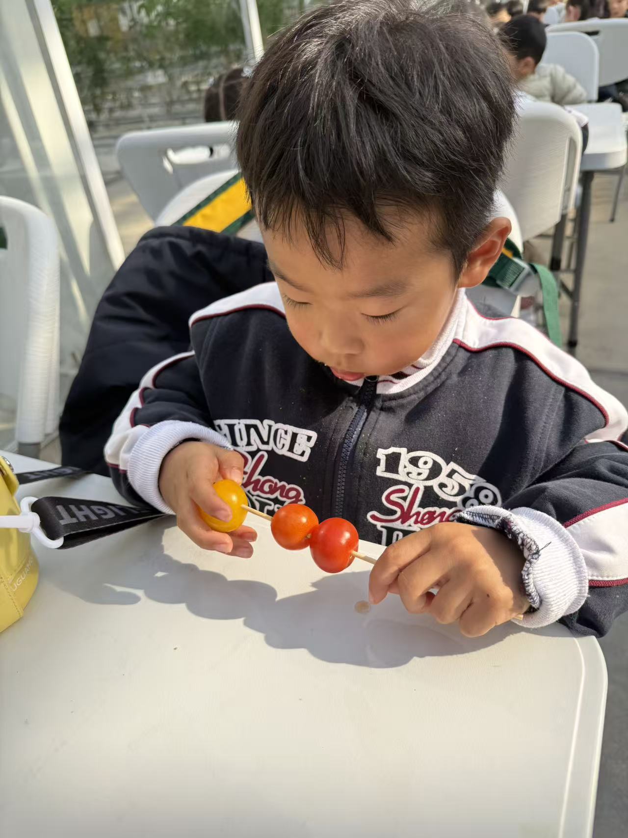 制作完成的冰糖葫芦成为宝贝们的“战利品”,他们细细品味自己的劳动成果,脸上写满满足与自豪。