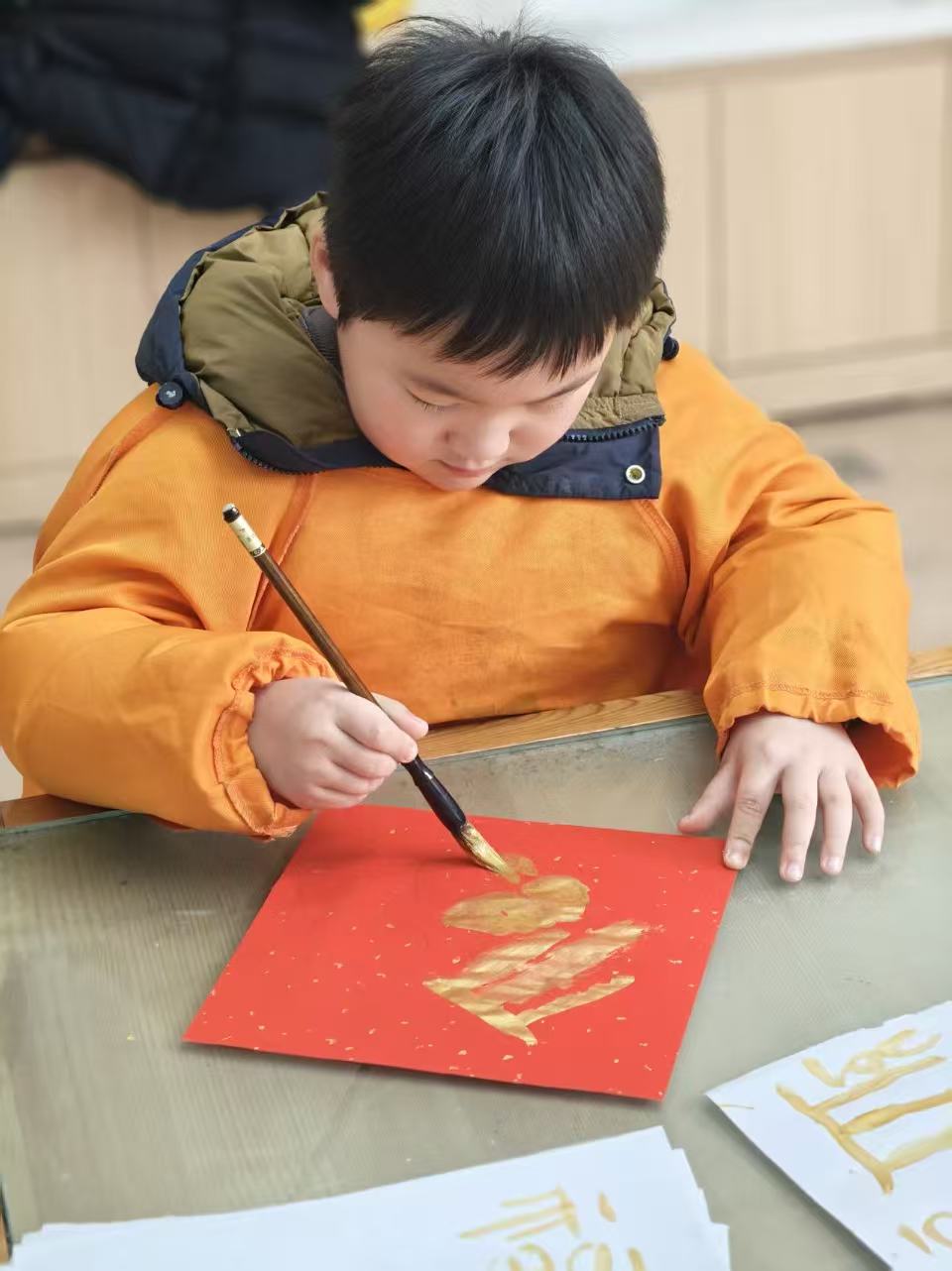 当孩子们高高举起自己的作品,脸上洋溢着藏不住的自豪与欢喜时,那些红纸金字,便不再仅仅是简单的书法练习。这是他们对新年最直观的理解,是用自己的方式,为身边的人送上最纯粹的祝福。