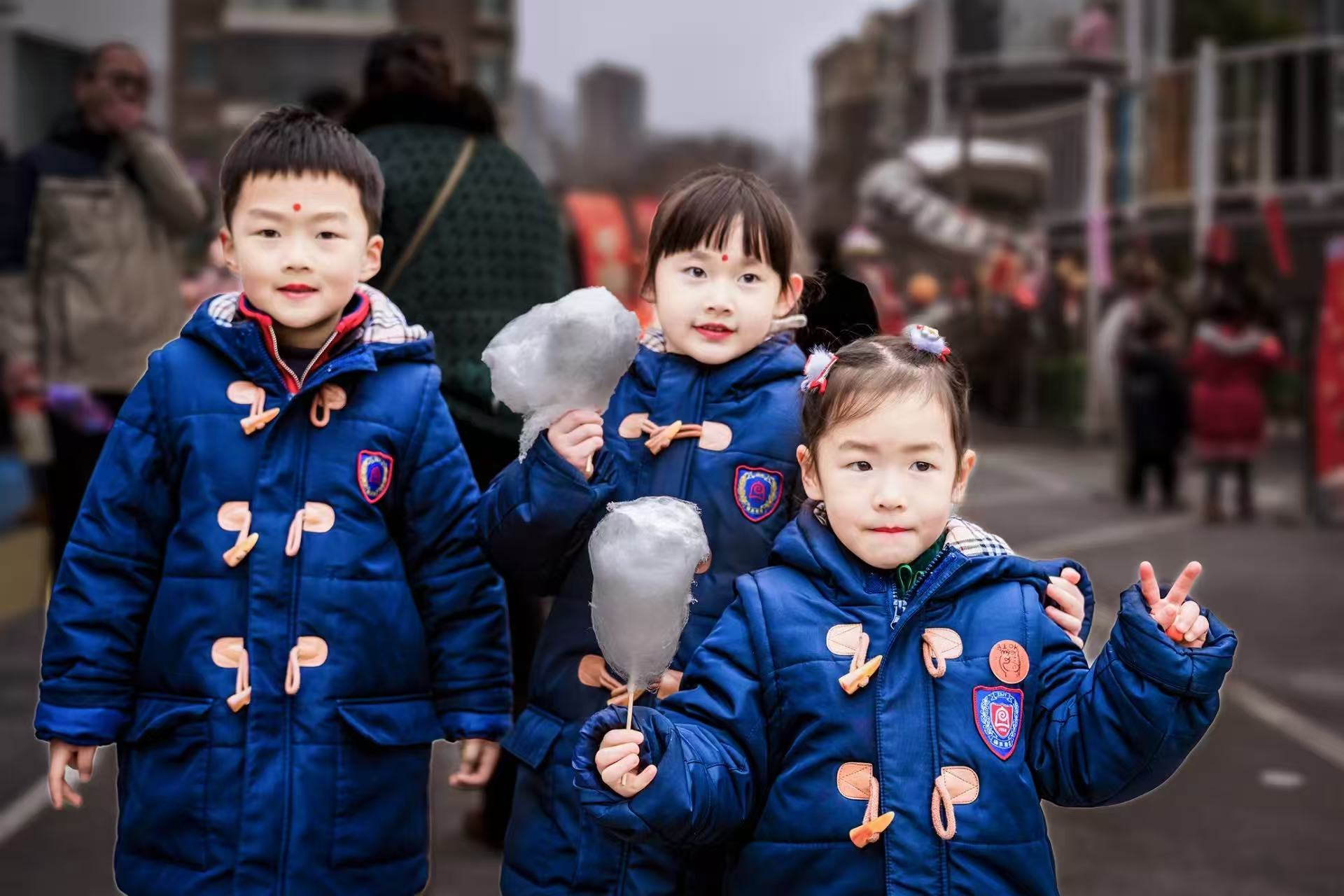 “我要吃这个甜甜的棉花糖!”“冰糖葫芦酸酸甜甜,像过年一样!”幼儿园变身“迷你美食街”:棉花糖机转出云朵般的甜,冰糖葫芦裹着晶莹糖衣,还有热乎的元宵在碗里“躺”成圆滚滚的模样。小嘴巴忙着品尝,小脸蛋被糖霜染得亮晶晶,连空气里都飘着幸福的甜香~