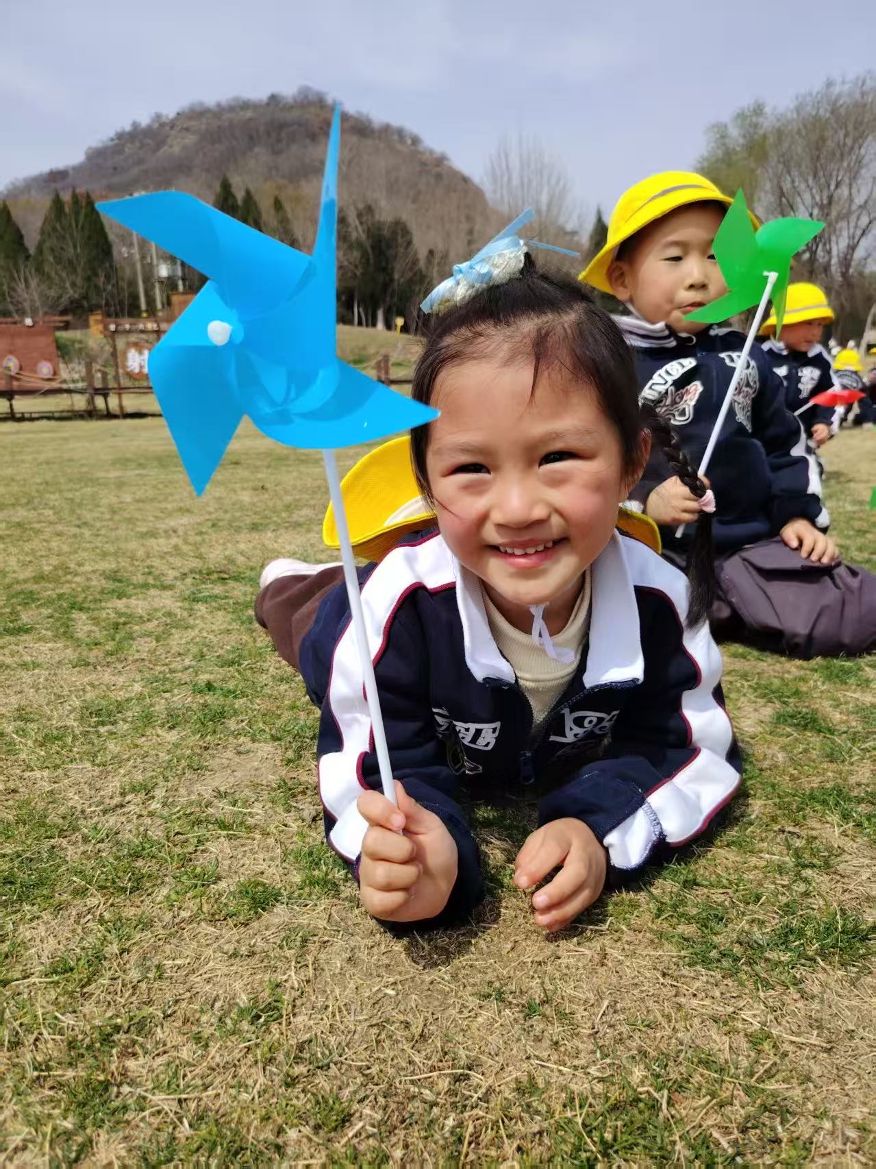 彩色风车转呀转,草坪上的笑声比风还轻快。