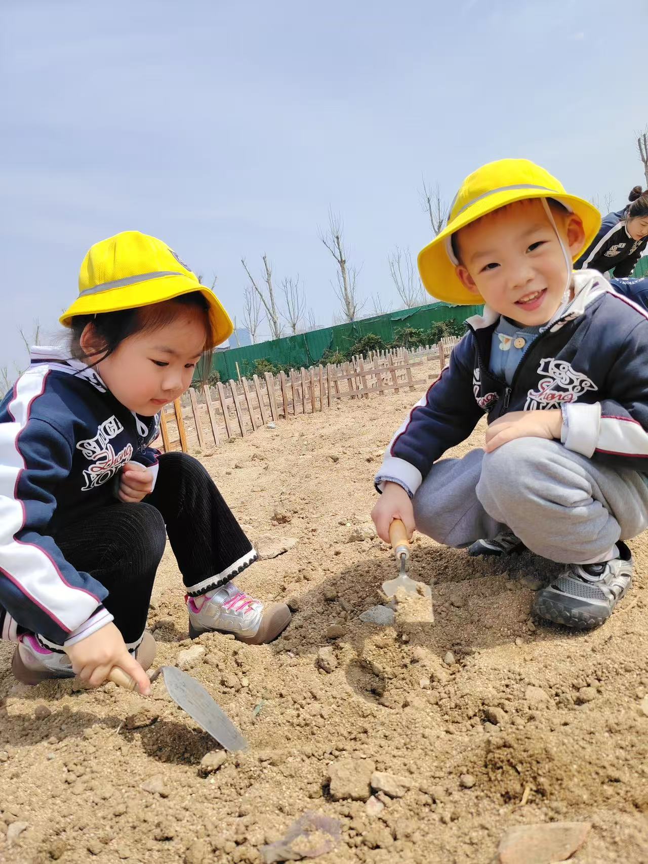 孩子们蹲在田埂上,专注得眼睛都不眨,时不时挖出惊喜,欢呼着和小伙伴分享~