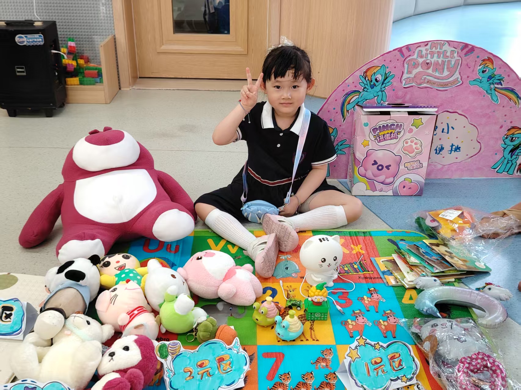 “爱心小天使”,带上自己闲置的玩具、绘本、手工作品、盲盒还有零食摆满了摊位热闹极了。