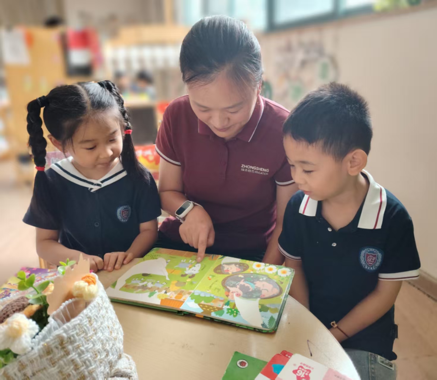 有的孩子起初沉默,却在某一天突然指着图画说:“老师,你看!大象在笑!”那一刻,我知道故事的魔法正在生效。有的孩子把绘本情节带进游戏,变成会魔法的公主、探险的小海盗,想象力如野草般自由生长。