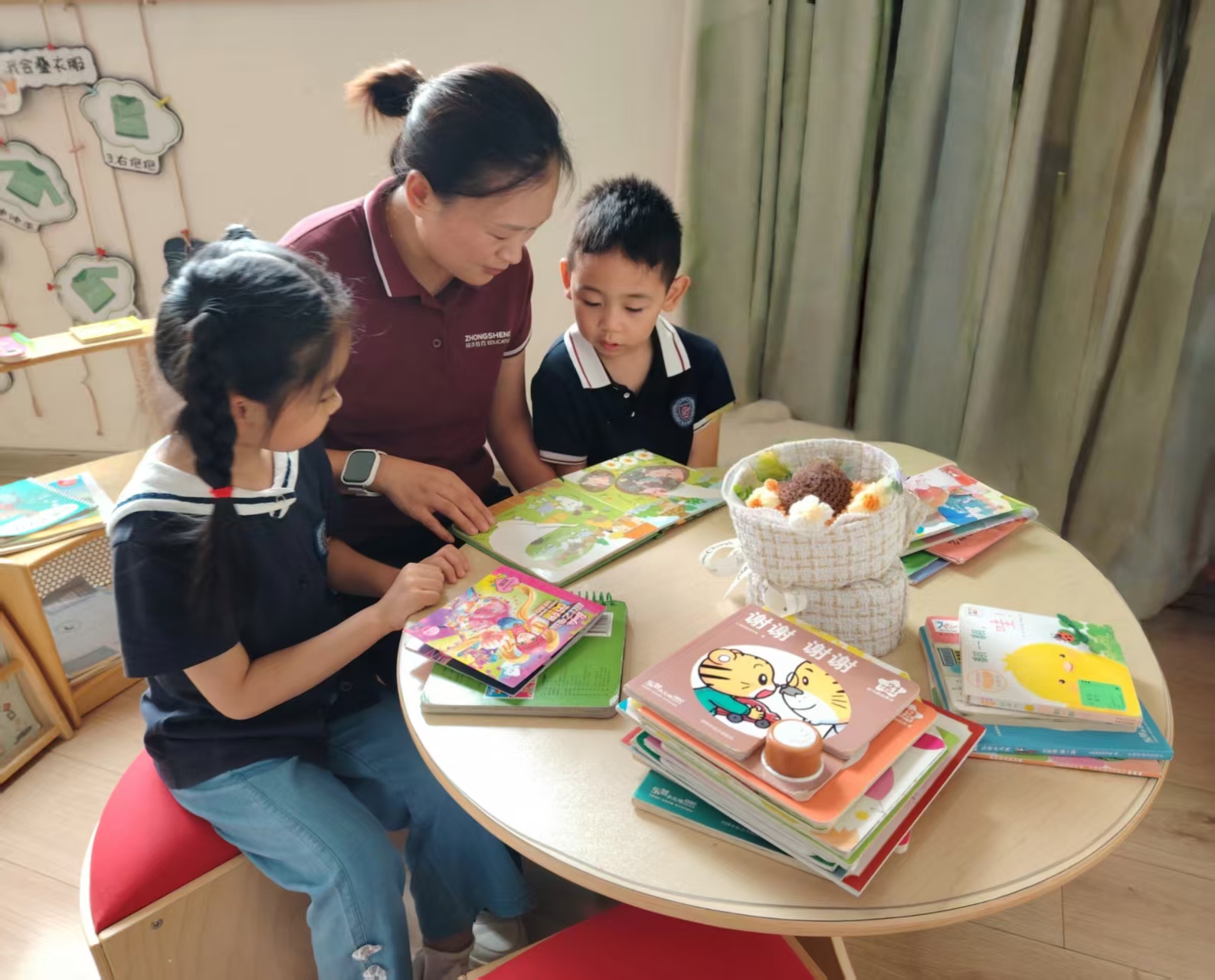 孩子们的眼睛是澄澈的湖水,倒映着绘本里的世界——勇敢的小黑鱼、温柔的月亮小熊、固执的小种子……他们为角色欢喜或担忧,在故事里学会爱、勇气与善良。而我,只是那个翻书的人,却常常被他们的纯真治愈。