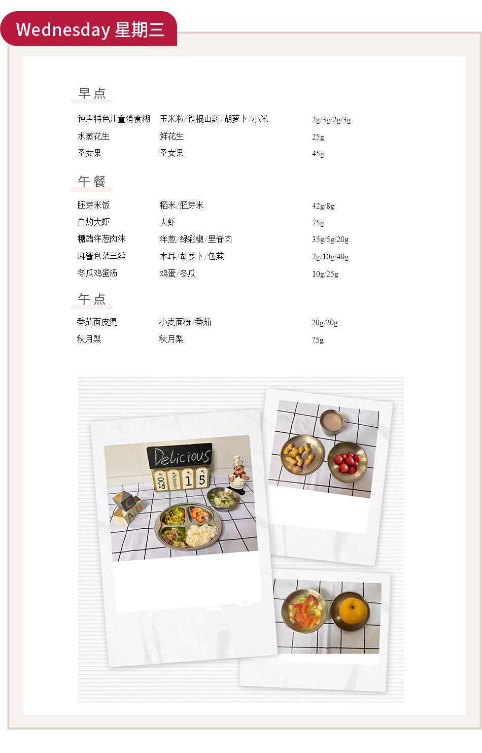 第十五周食谱