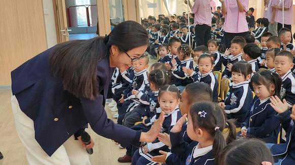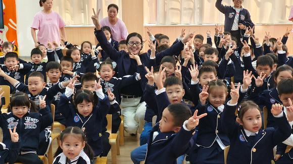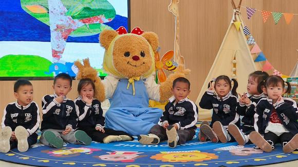 当《猜猜我有多爱你》的故事从陈老师口中缓缓流淌,戏剧化的肢体动作和生动的语言,让在场的小朋友一个个挺直小身板,清澈的眼眸里满是专注,仿佛被施了“定身咒”,整个世界都只剩下陈老师描绘的温情画面——大兔子和小兔子的爱,在这一刻,也悄悄种进了孩子们的心里。