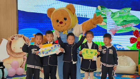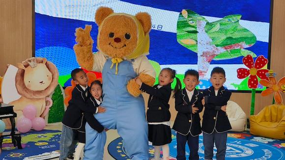 “哇哦,小熊,是小熊。。。。。。“在孩子们的尖叫与欢呼中,陈老师瞬间化身为孩子们的”童话伙伴“。孩子们兴奋地围在”小熊老师“身边,一个个扬起天真的笑脸,争相牵手合影。这温暖的画面,是绘本故事会里最治愈的尾声——陈老师用童趣的方式,把故事的魔法延续到了每一个拥抱与欢笑里,让孩子们的快乐在这一刻定格成最珍贵的记忆。