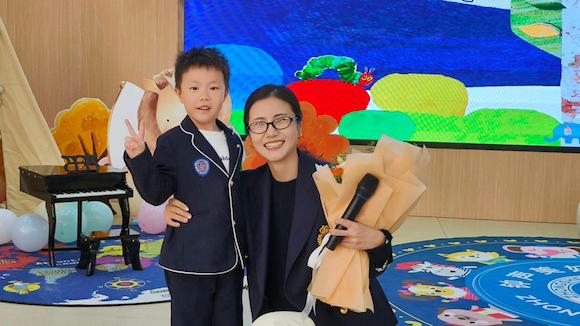 当小小的手捧着鲜花走向陈老师,中班宝贝用最纯粹的仪式,诉说着对绘本魔法的喜爱。那一束花,是童趣对知识的拥抱,是童心对故事的感恩——感谢陈老师用绘本为我们编织的奇幻世界,让每一次聆听都成为成长里的温暖印记。