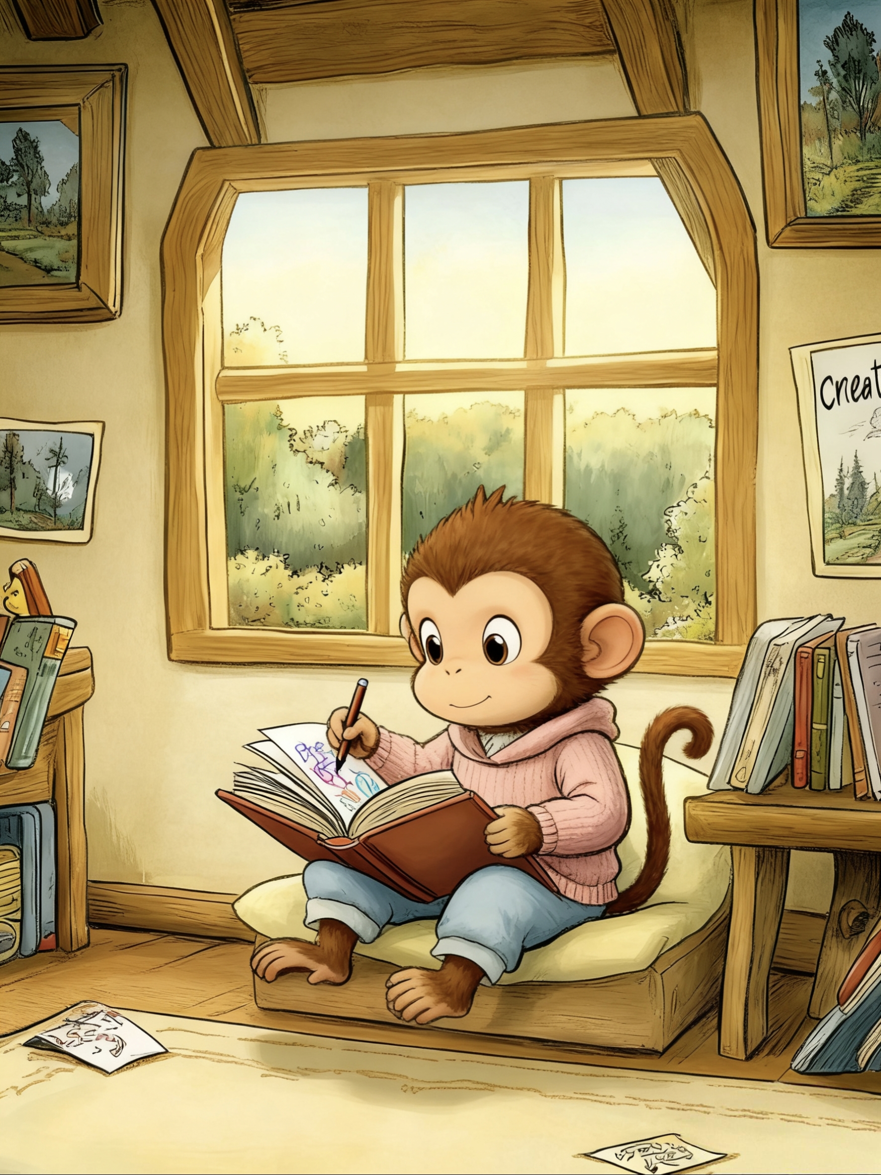 在森林的一个小屋里,住着可爱的小猴子齐齐,齐齐有一个很大的爱好,那就是看书。无论是有趣的冒险故事,还是美丽的童话,它都喜欢得不得了。