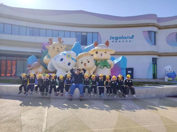 最后,外教老师和孩子们在巨大的卡通雕塑前合影留念。这一刻,阳光、笑容和快乐交织在一起,成为了他们童年里最美好的记忆。