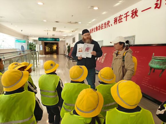 来到明亮的展厅,外教老师手持水晶图鉴,时而低头认真讲解,时而抬头与孩子们互动。他的神态温和而专注,声音里充满了对水晶世界的热爱与敬畏。孩子们围站在他身旁,像一群小海绵,认真地吸收着关于水晶的知识。