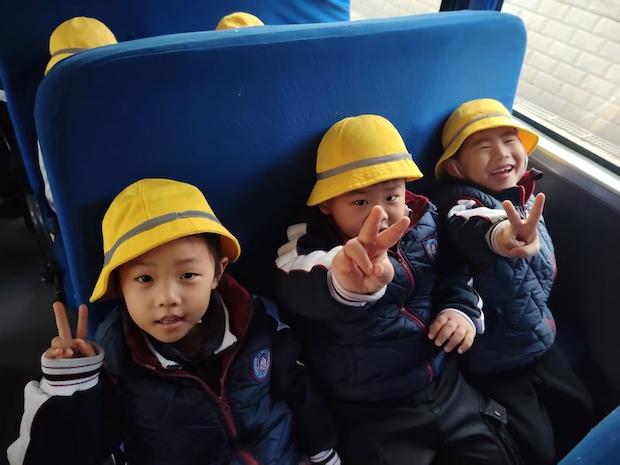 小朋友们,在去摘苹果的路上兴奋不已,对一路上所见的景色,与小伙伴们尽情畅谈。研学大巴缓缓启动,小小果园主们已整装待发,准备就绪,踏上研学旅途的征程。“我们要去石桥摘苹果啦!”