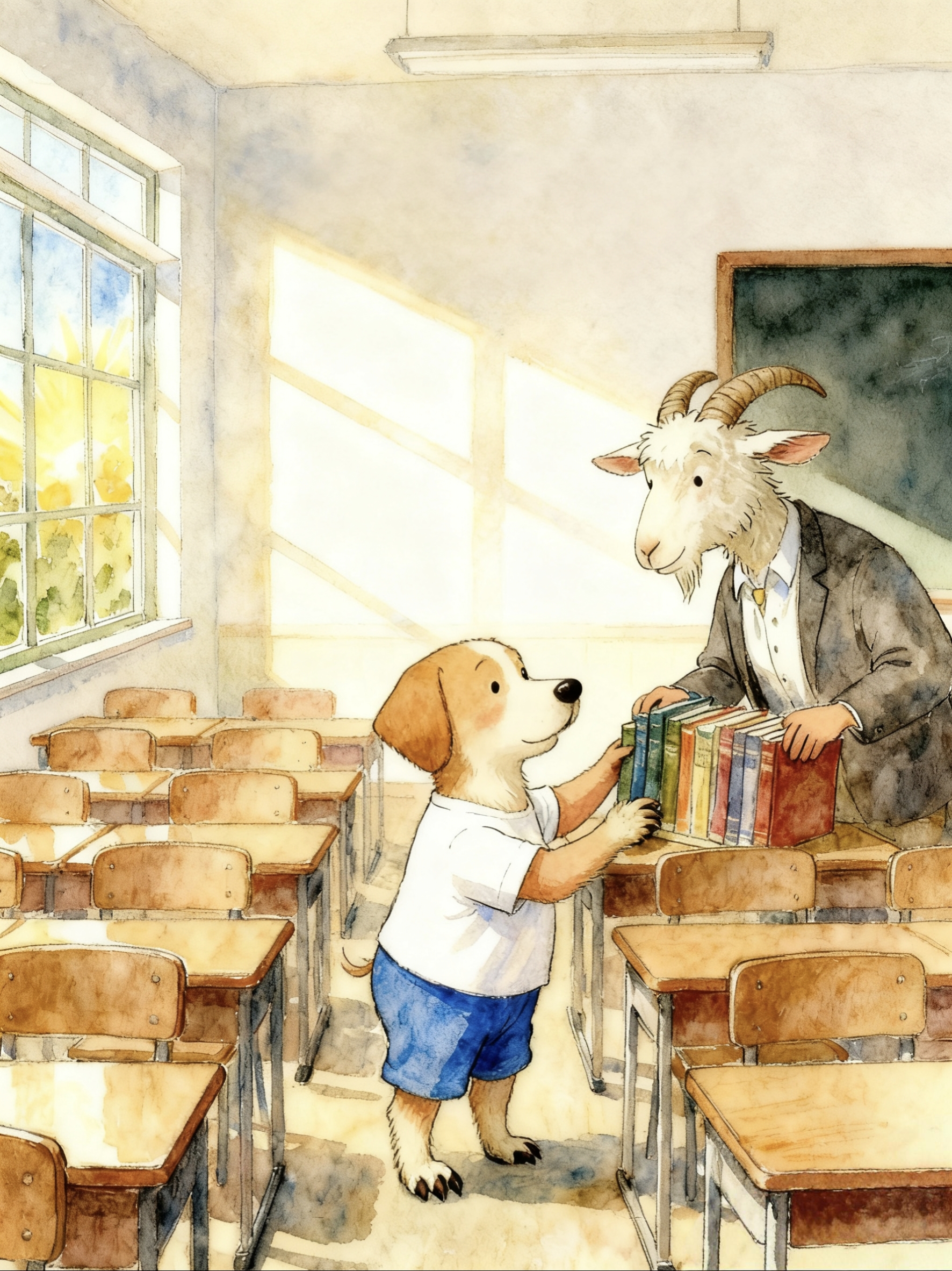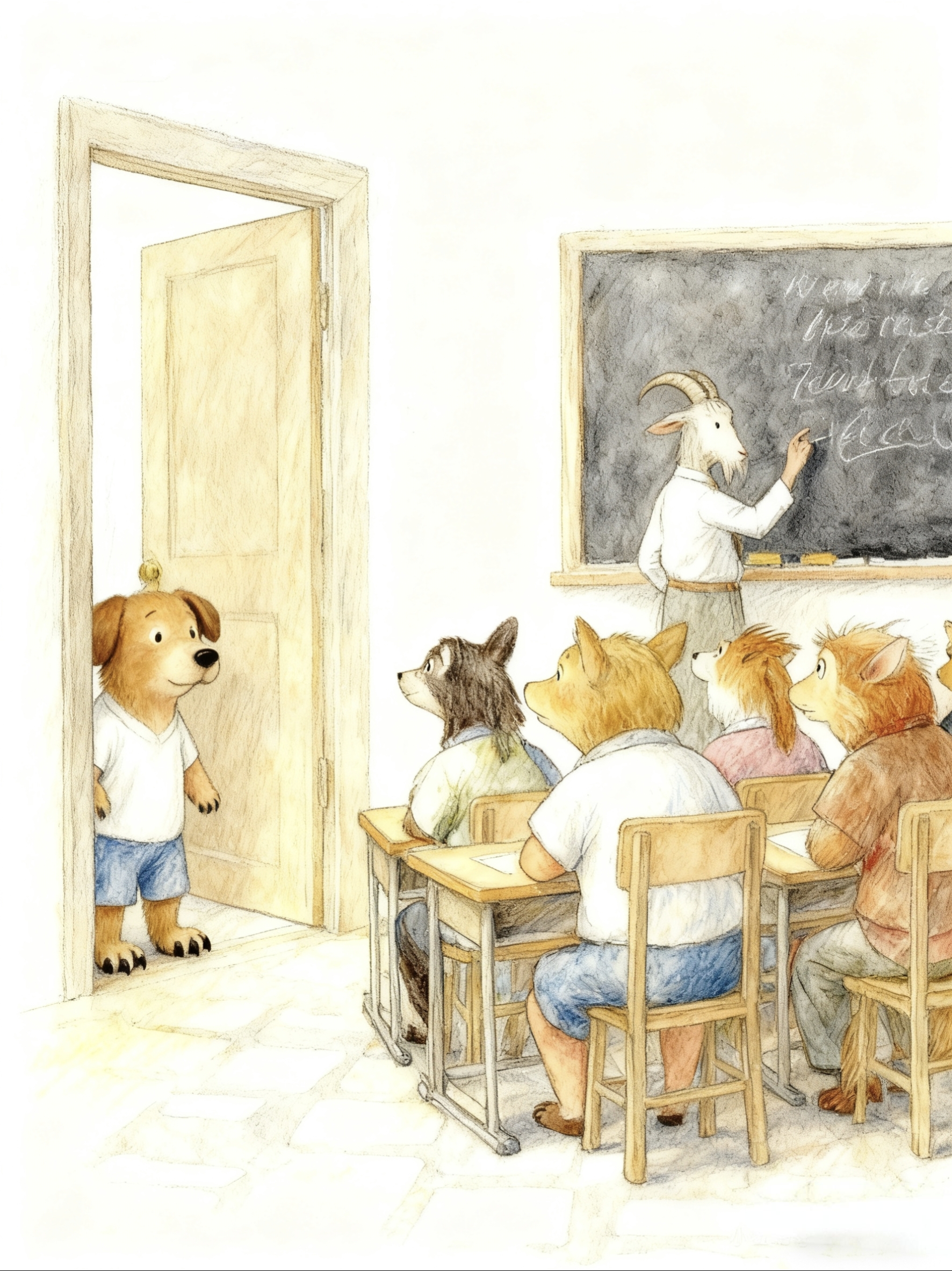 学校上课的时间是8:30!“天哪!要迟到啦!”仔仔尖叫起来。仔仔跑啊跑,跑得满头大汗,心里又着急又慌张。教室里安安静静,大家齐刷刷地看向门口狼狈的仔仔。他的好朋友小兔子悄悄告诉他:“你错过了最精彩的讲故事时间!山羊老师讲了一个超级有趣的冒险故事!”仔仔的心里空落落的。他最喜欢听故事了。