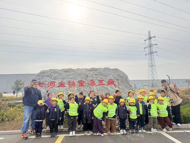 在七河生物东海三厂的石碑前,钟声幼儿园的宝贝们排着整齐的队伍留下了研学之旅的集体合影。一张张稚嫩的小脸上扬着笑意,小手比出的剪刀手、竖起的小拳头,都是这场旅程里收获的快乐与成长的见证。这场东海七河香菇研学之旅,不仅让孩子们在自然与玩乐中习得知识,更让探索的种子在心底生根发芽,也让我们看到了每个孩子身上闪闪发光的实践能力与求知热情。