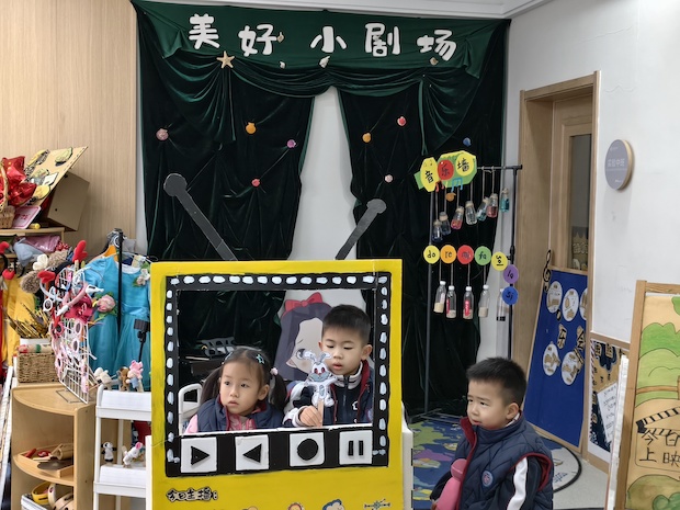 中班的区角里,藏着最温柔的童趣时光。亲子戏剧区的小宝贝们围在“美好小剧场”的模拟镜头前,眼神睁得圆圆的,小手攥着道具认真比划,嘴巴微微张开似在念着台词,稚嫩的脸上满是投入与好奇,仿佛真的化身小小演员在演绎精彩故事。区角里的每一个小身影,都用最纯真的动作、最生动的表情,勾勒出中班宝贝们在自主探索中成长的温馨画面。