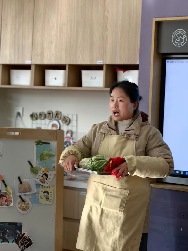 暖融融的阳光漫进钟声美好幼儿园的班级小厨房,我们的老师眼里盛着亮晶晶的笑意,她微微俯身,将带着新鲜水汽的白菜稳稳托在盘中,亮着嗓子开口时,连空气里都裹着亲切的烟火气。来自青海的老师们正坐在一旁,眼里满是认真与温柔,静静看着这一幕生动的课堂。