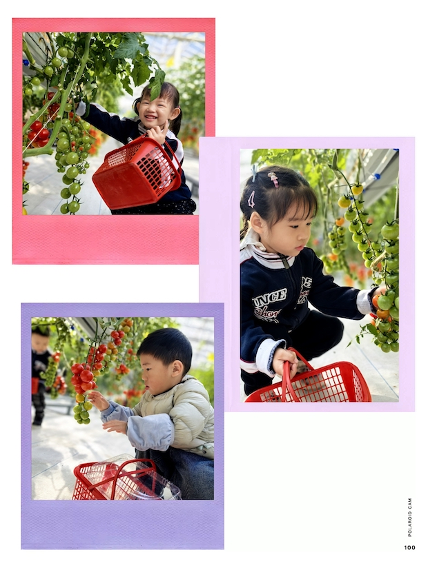 在温暖的阳光温室里,一场充满童趣的采摘之旅正式开始啦✨孩子们蹲在繁茂的番茄架旁,小眼睛亮晶晶的,被垂挂着的红黄绿相间的小果子吸引。有的孩子稳稳攥着红色小篮子,伸出小手轻轻去够最红的那颗番茄,专注的小脸上满是认真;有的孩子举着篮子比出胜利的“V”字,嘴角咧得大大的,笑容像阳光一样灿烂;还有的孩子歪着脑袋仔细打量,小心翼翼地捏起一颗果子,眼神里满是新鲜与好奇。清脆的笑声混着叶片的轻响,每一只小小的手都在收获着属于自己的快乐,红通通的番茄和孩子们红扑扑的脸蛋相映成趣,整个温室里都漾着暖洋洋的幸福感。