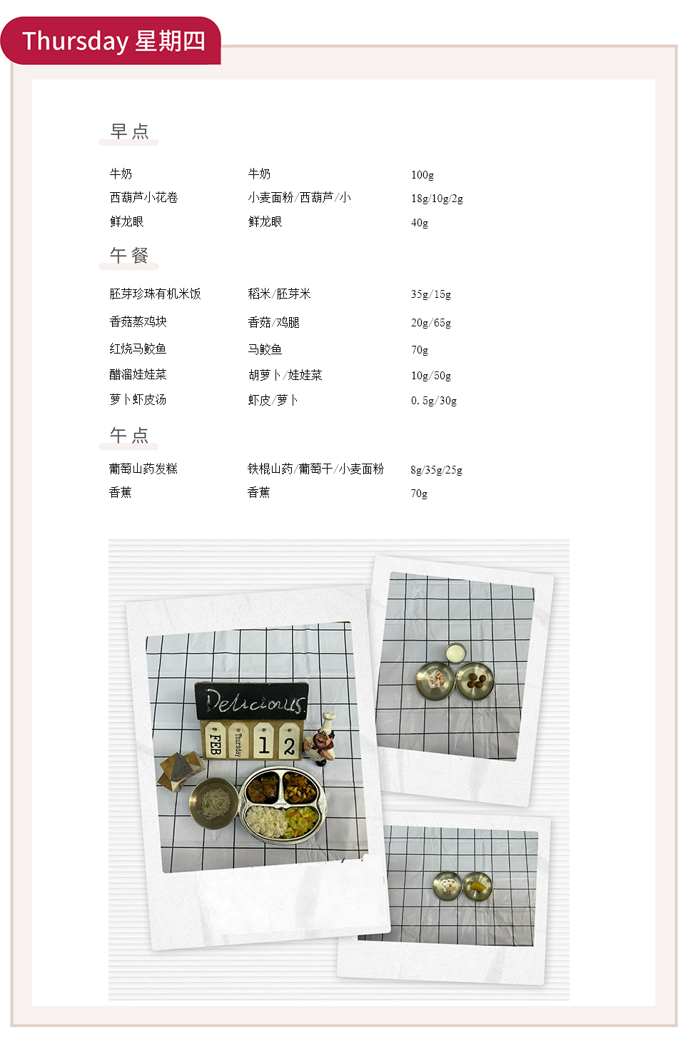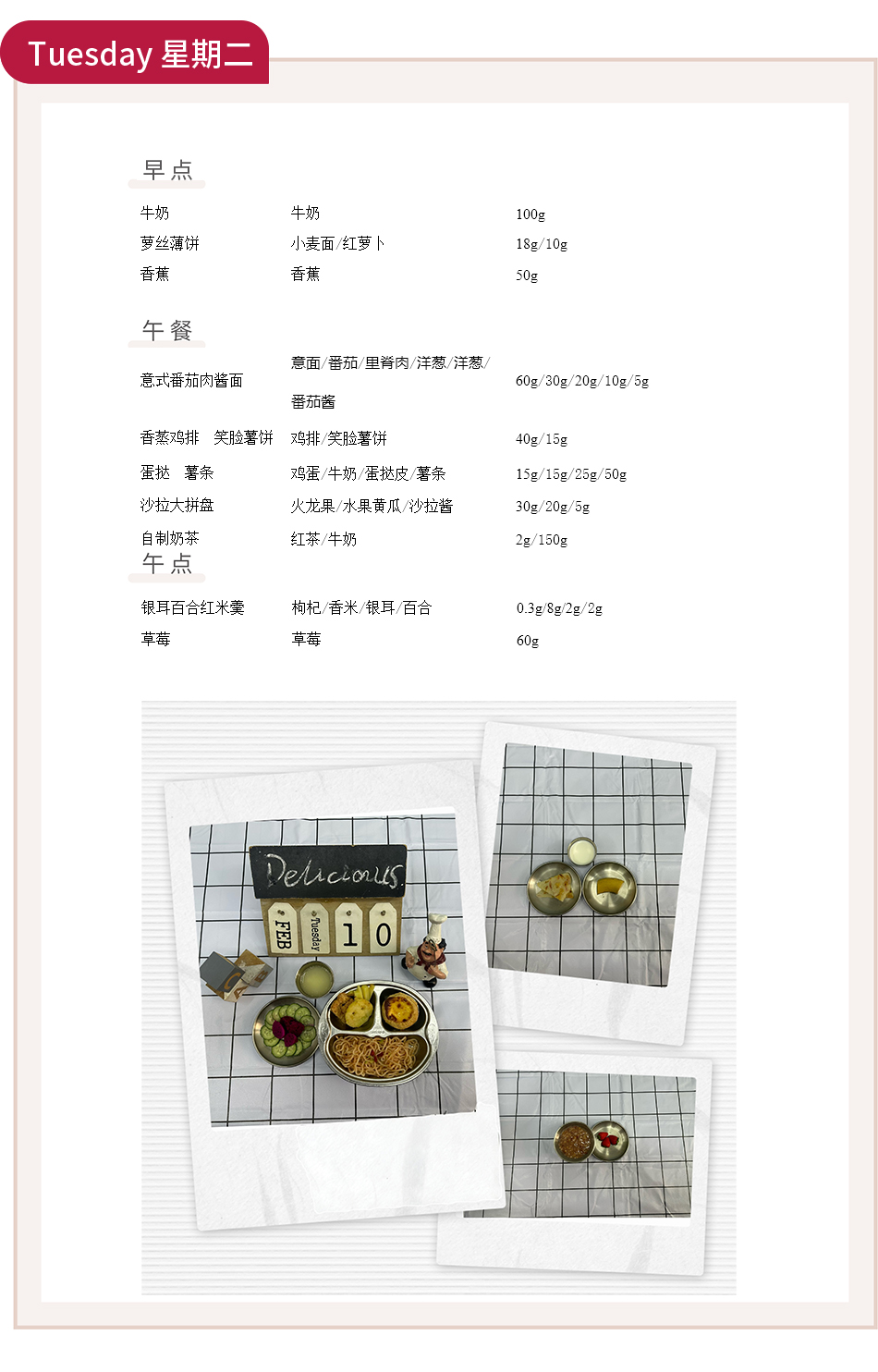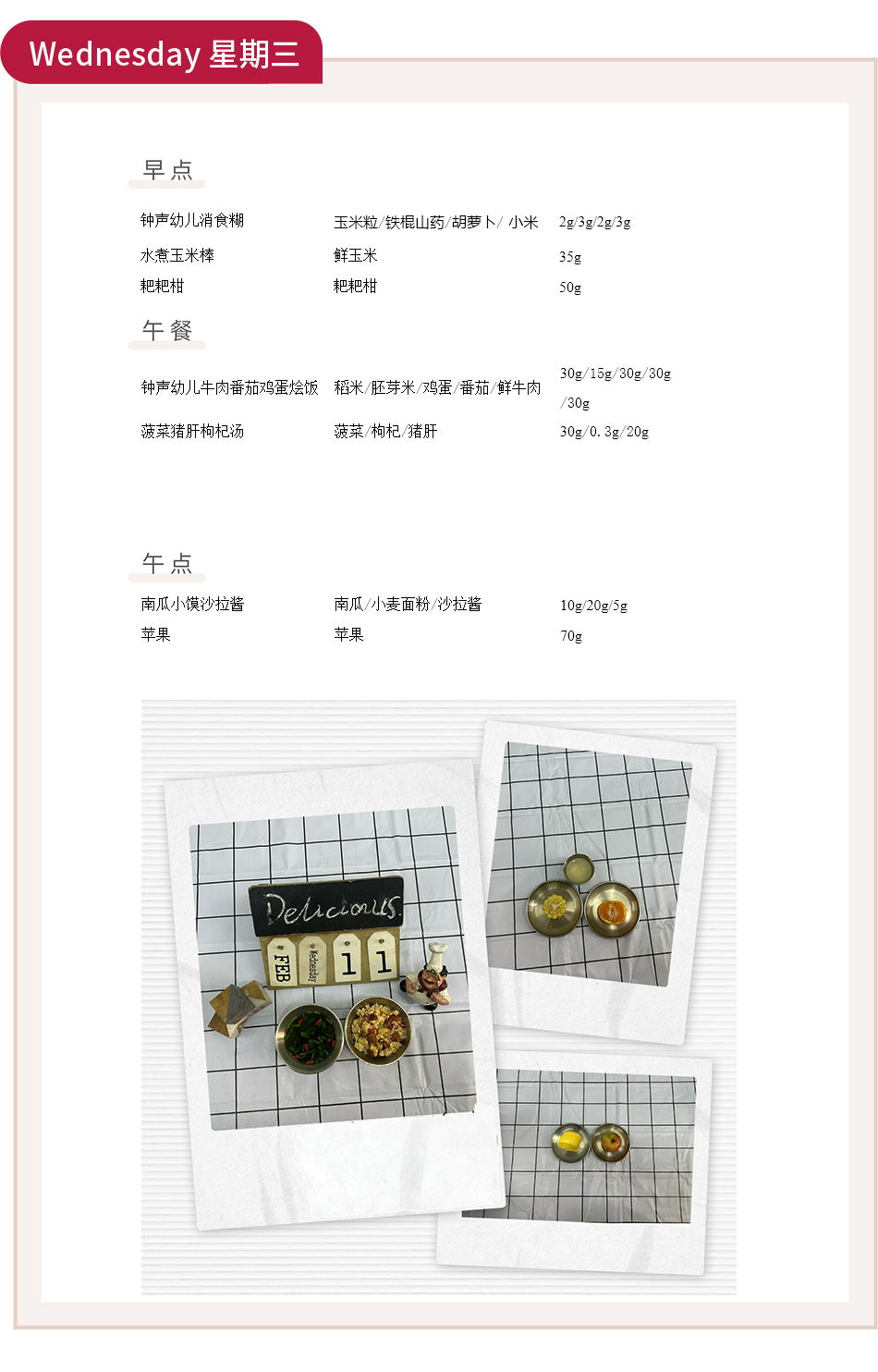 本周(2.6-2.14)的食谱已新鲜出炉啦!这段时间正值立春节气,万物复苏,阳气生发,我们的食谱也顺应时节,为孩子们精心搭配了温润、易消化的食材,助力他们在春日里健康成长。