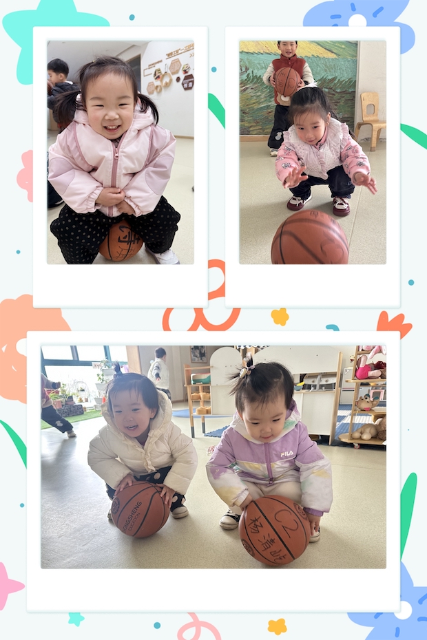 当晨间的微风拂过走廊,篮球在地板上弹起清脆的声响,宝贝们的心情也跟着雀跃起来。第一次离开爸爸妈妈的陪伴,小小的身影里还带着一丝怯生生的试探,但当指尖触到篮球的温热,当同伴的笑声在耳边响起,那些不安便悄悄融化在欢声笑语里。你看,她蹲下身,眼睛亮晶晶地盯着滚动的球,小手努力向前伸,像是要抓住整个世界的快乐;还有的宝贝把球抱在怀里,像抱着最珍贵的宝藏,眼睛弯成了月牙,连小脚丫都跟着晃呀晃。篮球在孩子们的手中传递,也把勇气和快乐传递开来。在这一方小小的天地里,他们用最纯粹的方式,开启了与同伴、与幼儿园的第一次亲密接触。