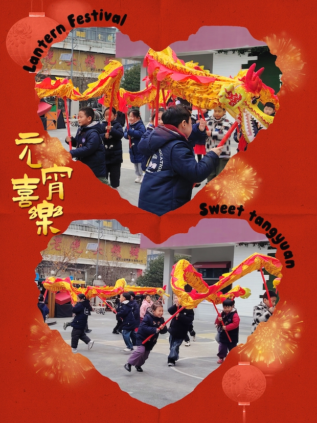午后的校园暖意融融,到处洋溢着团圆的喜气,亲子元宵游园会如约而至。伴随着欢快的节奏,开场表演率先登场。孩子们手持鼓槌,敲击出欢快的鼓点,那是属于童年的最强律动;紧接着,舞龙小队意气风发地走来,金龙昂首,红绸飞舞,小小的身躯合力操控着长龙蜿蜒盘旋。锣鼓喧天,龙舞腾飞,这红火的场面瞬间将现场气氛推向高潮。看着孩子们认真的模样,身旁家长们的喝彩与欢笑交织,这便是元宵节最热闹、最温馨的打开方式。