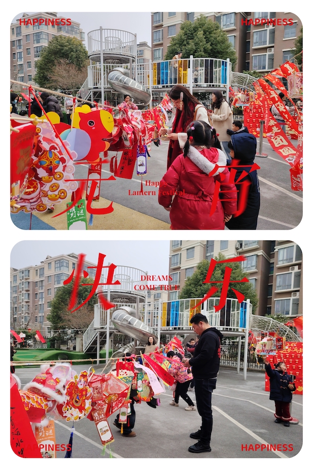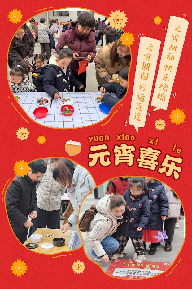元宵游园会正式开始,萌娃们欢欢喜喜闹元宵,校园里处处洋溢着温馨热闹的气息。各个趣味摊位前人头攒动,家长和孩子们一同沉浸在欢乐的民俗体验中。有的家长专注地看着游戏规则,耐心为孩子讲解玩法;有的家长一起下五子棋,时而凝神思考,时而相视一笑;有的陪着孩子小心翼翼夹豆子,孩子神情专注,家长在一旁轻声鼓励,满眼温柔;还有的大手握小手一起写福字,笔墨飘香间,孩子脸上满是认真与欢喜,家长的笑容温暖又满足。一张张幸福的笑脸相映成趣,每一处都充满欢声笑语,让这个元宵节格外温馨又难忘。