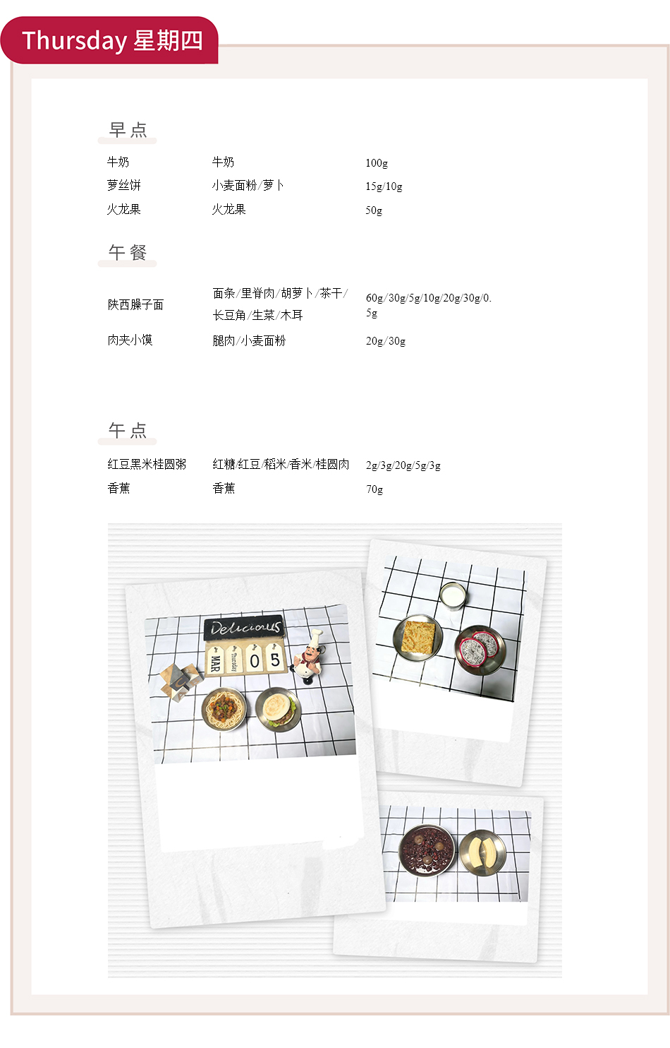 - 周四:红豆黑米桂圆粥 + 香蕉