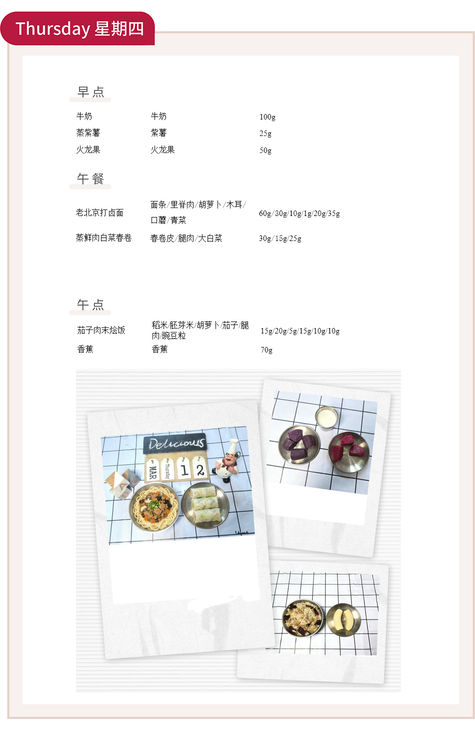 口味丰富:采用蒸、炖、煮、焖等温和烹饪方式,口味清淡少盐,兼顾鲜香、酸甜等风味,提升孩子食欲。